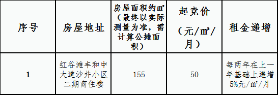 三、本次竞拍只报起竞价,房屋每间租金起竞价为: