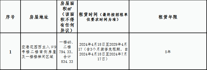 特别说明:(1)本次招租房屋涉及电表,水表、燃气等需中标人或直接委托人自费自行开户(包括材料及施工费用),房屋以现状出租,涉及一切维修改造工程产生的费用(包括但不限于房屋漏水、玻璃破损等)均由中标人自行承担,消防报建及其它审批手续中标人自行办理。