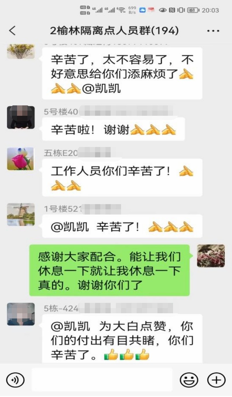 同时,集团驰援人员抵达隔离点后,迅速对隔离点环境卫生进行了大清扫,为隔离群众配齐防疫和生活物资,竭尽所能营造良好的隔离环境。