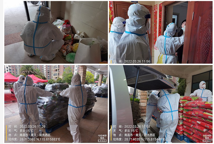 突击队员们在做好个人防护措施后进入社区,积极开展现场巡察、配合消杀、垃圾清运、物资配送、协同医护人员入户核酸检测等防疫封控工作。